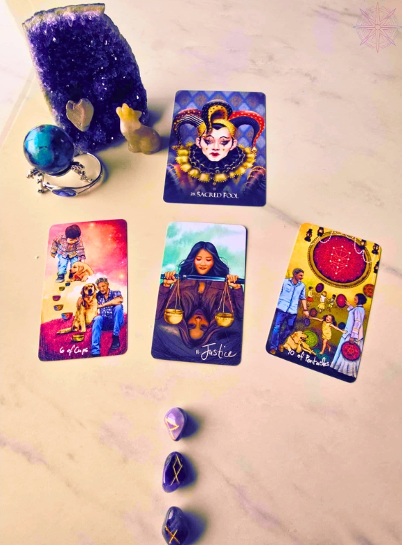 the 10 of Pentacles just feels…good. It brings in the energy and the spirit of community, of family, of love, joy and abundance. A lot of us feel as if we don’t quite fit within the community around us, a lot of us are searching for our people, for our community, and this card gives us hope that what we seek is on its way. Sometimes all it takes is a change in perception – you might not be looking at things from a wider perspective or seeing the bigger picture. You might not be seeing the community that already exists around you and all you have to do is make a small shift in perception and perspective. For me, that shift is in letting go of the community I thought I would have around me and embracing the community and the people that are here walking along side me in the present.